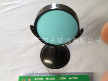帶底座凹透鏡 直徑:10厘米 焦距:負(fù)300mm 幼兒園小朋友 或者中小學(xué)生認(rèn)識凹透鏡的特點(diǎn) 學(xué)習(xí)凹透鏡光學(xué)原理的的器材 尺寸大也時(shí)候教師教學(xué)演示用教具 知識拓展閱讀: 凸透鏡與凹透鏡可以從以下幾個(gè)方面加以區(qū)別:外形特征、對光線的作用、成像特點(diǎn)及用途等。具體方法如下: 方法一:用手摸,鏡子的中央部分比邊緣厚的是凸透鏡,鏡子的中央部分比邊緣薄的是凹透鏡。 方法二:隔著鏡子觀察距鏡子較近的書上的字,有放大作用的是凸透鏡;字變小的是凹透鏡。 方法三:隔著鏡子觀察距鏡子較近的書上的字,移動鏡子,若發(fā)現(xiàn)像的移動方向總是與鏡子的移動方向相同,則該鏡子是凹透鏡;若發(fā)現(xiàn)像的移動方向總是與鏡子的移動方向相反,則該鏡子是凸透鏡。 方法四:隔著鏡子觀察窗外的物體,若能看到上下左右都顛倒的像,這種鏡子是凸透鏡;若看到像是正立的,這種鏡子是凹透鏡。 方法五:將點(diǎn)燃的蠟燭放在離透鏡適當(dāng)距離處,在另一側(cè)光屏上能得到倒立實(shí)像的是凸透鏡;無論怎樣調(diào)節(jié),在另一側(cè)光屏上不能得到像的是凹透鏡。 方法六:讓鏡子正對太陽光照射,在鏡子的另一側(cè)放一張與透鏡平行的白色卡片紙,耐心調(diào)節(jié)鏡子與紙之間的距離,能得到一個(gè)小亮點(diǎn)的是凸透鏡;始終不能獲得小亮點(diǎn)的是凹透鏡。 方法七:觀察陽光通過了兩副眼鏡在地面上形成的光斑,若形成光斑的中間比四周明亮,則鏡子是凸透鏡;若形成光斑的中間比四周暗,則鏡子是凹透鏡。 方法八:近視眼鏡,是用凹透鏡做成的。老花鏡,是用凸透鏡做成的。 說明:辨別凸透鏡與凹透鏡有好多方法,哪種方法好,要視具體情況而定。例如,如果待辨別透鏡的中央與邊緣的厚薄差異不明顯,就不能用“摸”的方法(況且精密光學(xué)儀器是不允許直接用手去摸的);在有太陽光與沒有太陽光的場合,所選的方法也不同??傊?,一種好方法,應(yīng)該簡便、易行、有效。它是隨場合變化而變化的,不宜一概而論。 技巧:當(dāng)你想要判別兩件事物的相同和不同之處時(shí),就需要用比較與對比的方法。比較就是找出事物的相似性,即共同特征。對比是找出事物的不同點(diǎn)。用這種方法來分析事物,能幫助你發(fā)現(xiàn)一些平時(shí)容易忽略的細(xì)節(jié)。