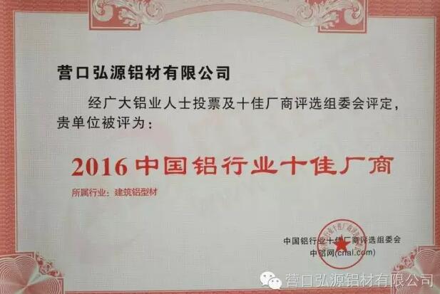 弘源鋁材榮獲中國建筑鋁型材十佳廠商 [2016-11-01]營口弘源“三強(qiáng)”鋁材通過持之以恒的積累和堅(jiān)守,將會(huì)以更好的成績回饋大家的信任與支持!
