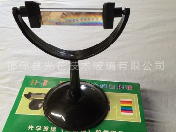 光學(xué)上將橫截面為三角形的透明體叫做三棱鏡,它是由透明材料作成的截面呈三角形的光學(xué)儀器,屬于色散棱鏡的一種,能夠使復(fù)色光在通過棱鏡時(shí)發(fā)生色散。光從棱鏡的一個(gè)側(cè)面射入,從另一個(gè)側(cè)面射出,出射光線將向底面(第三個(gè)側(cè)面)偏折,偏折角的大小與棱鏡的折射率,棱鏡的頂角和入射角有關(guān). 白光是由各種單色光組成的復(fù)色光;同一種介質(zhì)對不同色光的折射率不同;不同色光在同一介質(zhì)中傳播的速度不同. 所以,因?yàn)橥环N介質(zhì)對各種單色光的折射率不同,所以通過三棱鏡時(shí),各單色光的偏折角不同。因此,白色光通過三棱鏡會將各單色光分開,形成紅.橙.黃.綠.藍(lán).靛.紫七種色光即色散。 1666年,英國物理學(xué)家牛頓做了一次非常著名的實(shí)驗(yàn),他用三棱鏡將太陽白光分解為紅、橙、黃、綠、藍(lán)、靛、紫的七色色帶。據(jù)牛頓推論:太陽的白光是由七色光混合而成,白光通過三棱鏡的分解叫做色散,彩虹就是許多小水滴為太陽白光的色散,各色波長如下(納米):紅:660 橙:610 黃:570 綠:550 藍(lán):460 靛:440 紫:410